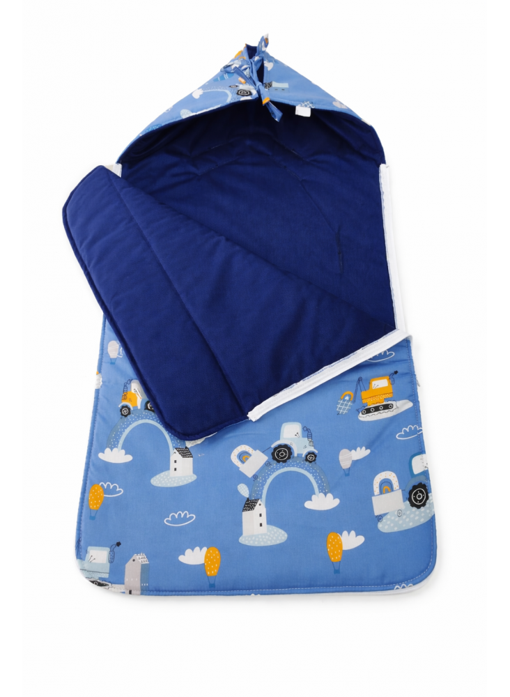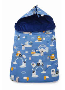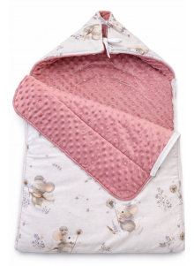 Nasz śpiworek pasujący do gondoli, posiada zawiązywany kapturek na tasiemki, który szczelnie otuli dziecięcą główkę.