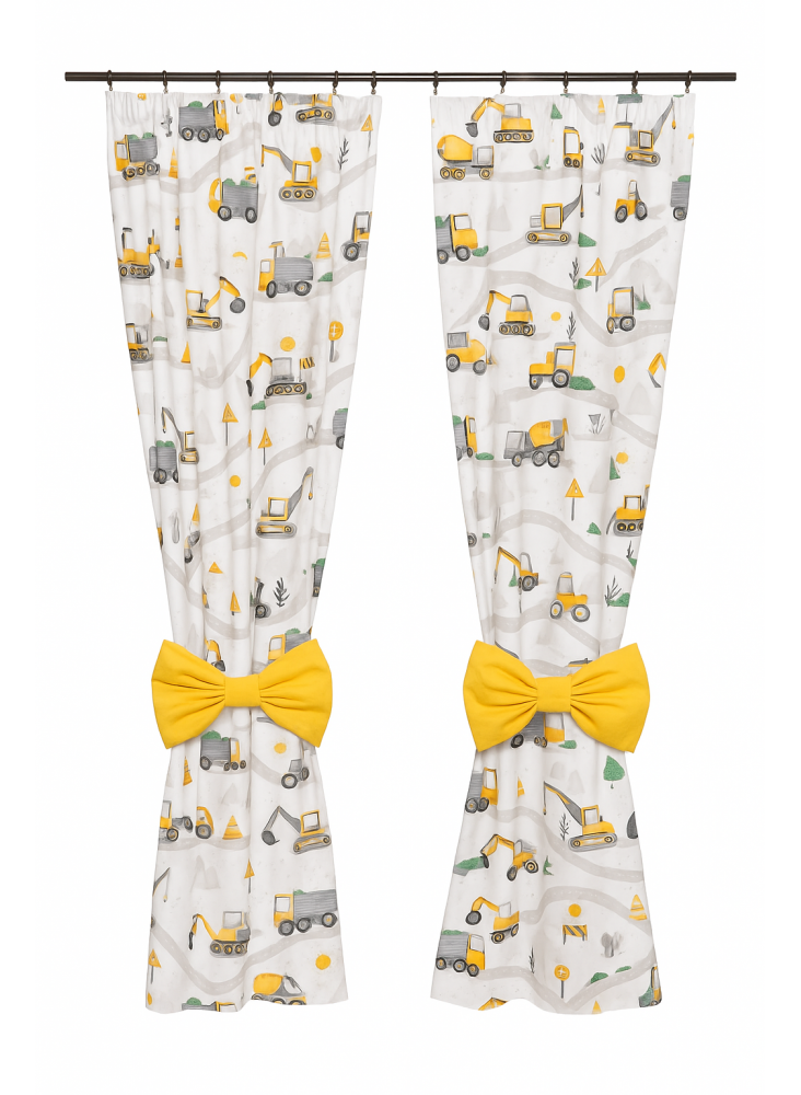 W zestawie znajduje się również kokarda do przewiązania zasłon, która pełni nie tylko funkcję praktyczną, ale także ozdobną – idealnie podkreśla charakter dekoracji i ułatwia efektowne upięcie.