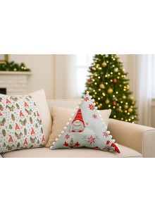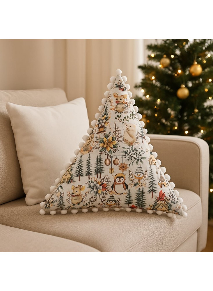Świąteczna poduszka trójkątna to uroczy element dekoracyjny, który wniesie do wnętrza ciepło i wyjątkowy klimat zimowych dni. Wykonana z miękkiej tkaniny w przyjemnych, naturalnych barwach, zdobiona jest uroczym wzorem . Całość dopełniają pomponiki wszyte wzdłuż krawędzi, które nadają jej subtelny, świąteczny charakter.