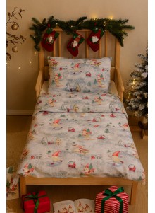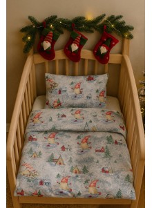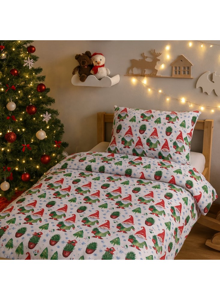Świąteczny wzór pełen krasnali, reniferów i zimowych akcentów sprawi, że każdy sen stanie się radosną przygodą, a pokój dziecka nabierze wyjątkowego uroku. 🎄