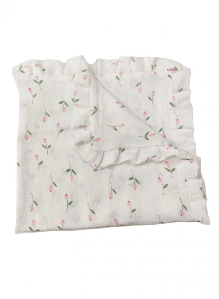 Kocyk muślinowy 80x80 cm z falbanką – lekki, oddychający, elegancki