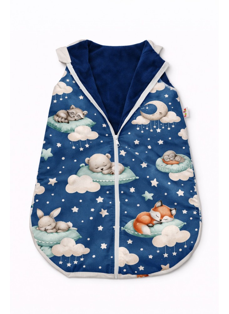 Wykonany: na zewnątrz bawełna najwyższego gatunku w wielu wzorach do wyboru. Środek śpiworka to niesamowicie ciepły i miękki plusz Velvet lub Minky ,wypełnienie poliestrowe.