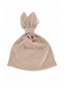Przytulanka królik z haftem „Born in 2026” – muślinowa miękkość w trzech kolorach