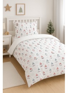 Świąteczny wzór z krasnalami, reniferami i zimowymi detalami sprawia, że pościel staje się nie tylko praktycznym elementem wyposażenia, ale też piękną dekoracją, która wprowadza radość i przytulność w każdy zimowy wieczór. 🎄✨