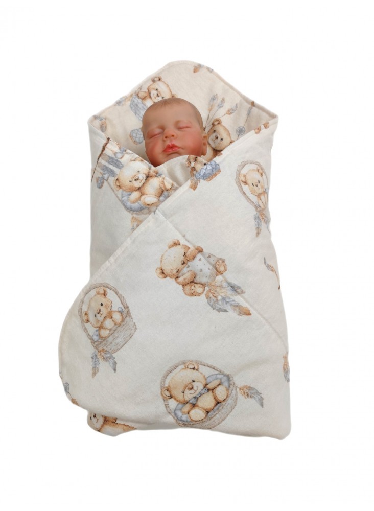 Wykonany z dwustronnej, wysokogatunkowej flaneli bawełnianej, delikatnie otula dziecko, zapewniając mu przyjemne ciepło i spokój.