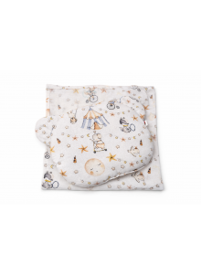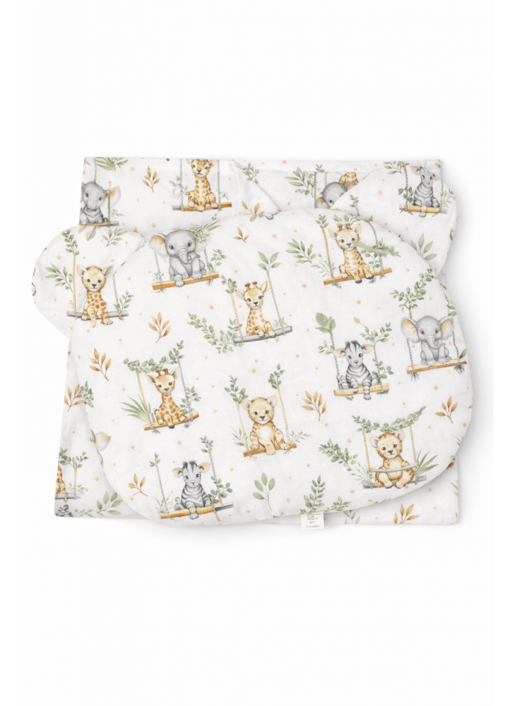 Zestaw składa się z uroczej poduszki w kształcie misia oraz ciepłego otulacza flanelowego 80x80 cm. To praktyczne i piękne połączenie, które sprawdzi się zarówno w domu, jak i podczas spacerów.