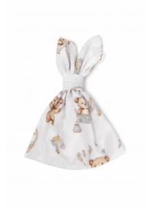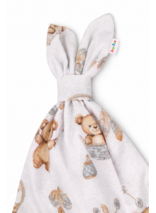 Subtelny wzór misiów w ciepłych, beżowo-brązowych odcieniach pięknie wpisuje się w naturalne, stonowane wyprawki.