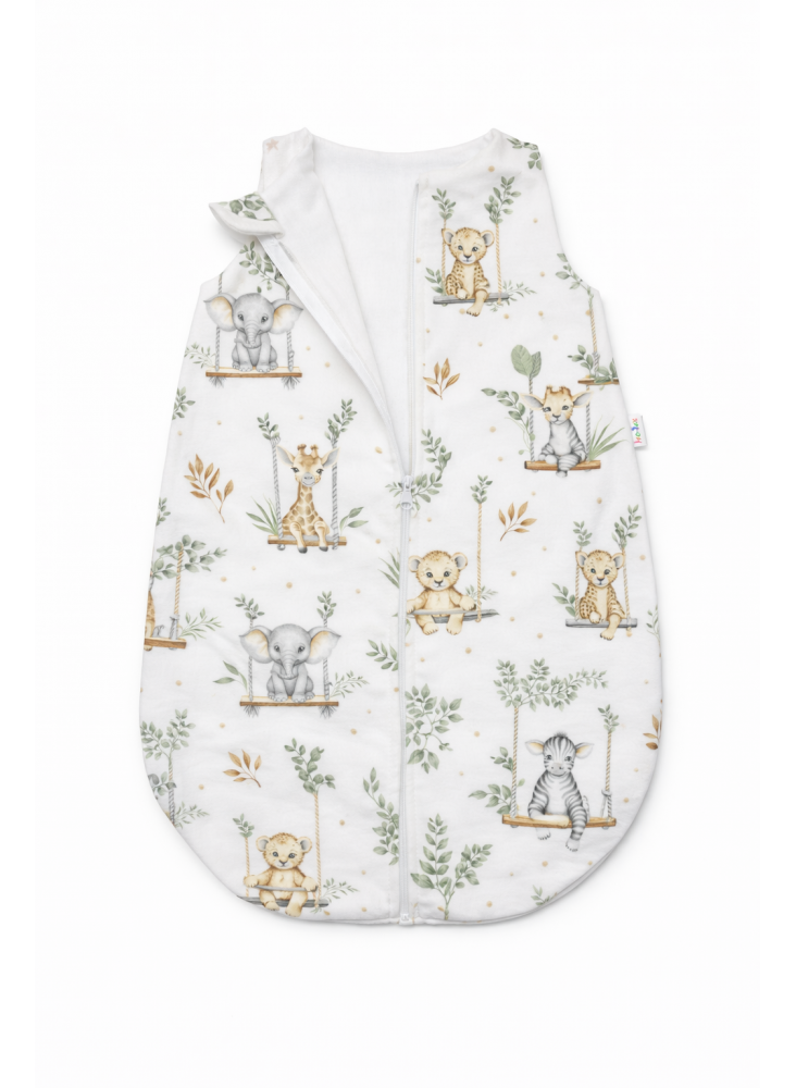 Śpiworek otula dziecko, dając mu poczucie bezpieczeństwa i stabilności podczas snu. Brak wypełnienia sprawia, że możesz dopasować ubiór dziecka do temperatury w pomieszczeniu — świetnie sprawdzi się zarówno w domu, jak i podczas drzemek w ciągu dnia.