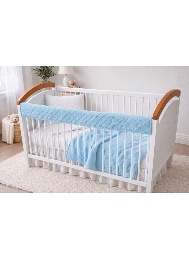 Wykonany z przyjemnego w dotyku, wysokiej jakości velvetu pikowanego, który nadaje produktowi elegancki wygląd i zapewnia dodatkową miękkość. Ochraniacz doskonale dopasowuje się do górnej listewki łóżeczka, tworząc estetyczne i funkcjonalne wykończenie.