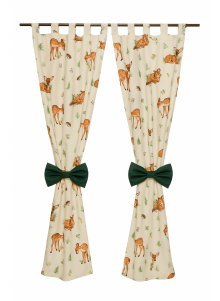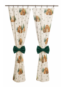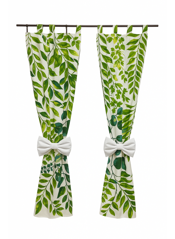 Dodatkowo w zestawie znajduje się ozdobna kokarda do przewiązania zasłon, która pozwala efektownie upiąć materiał i stanowi subtelny element dekoracyjny.